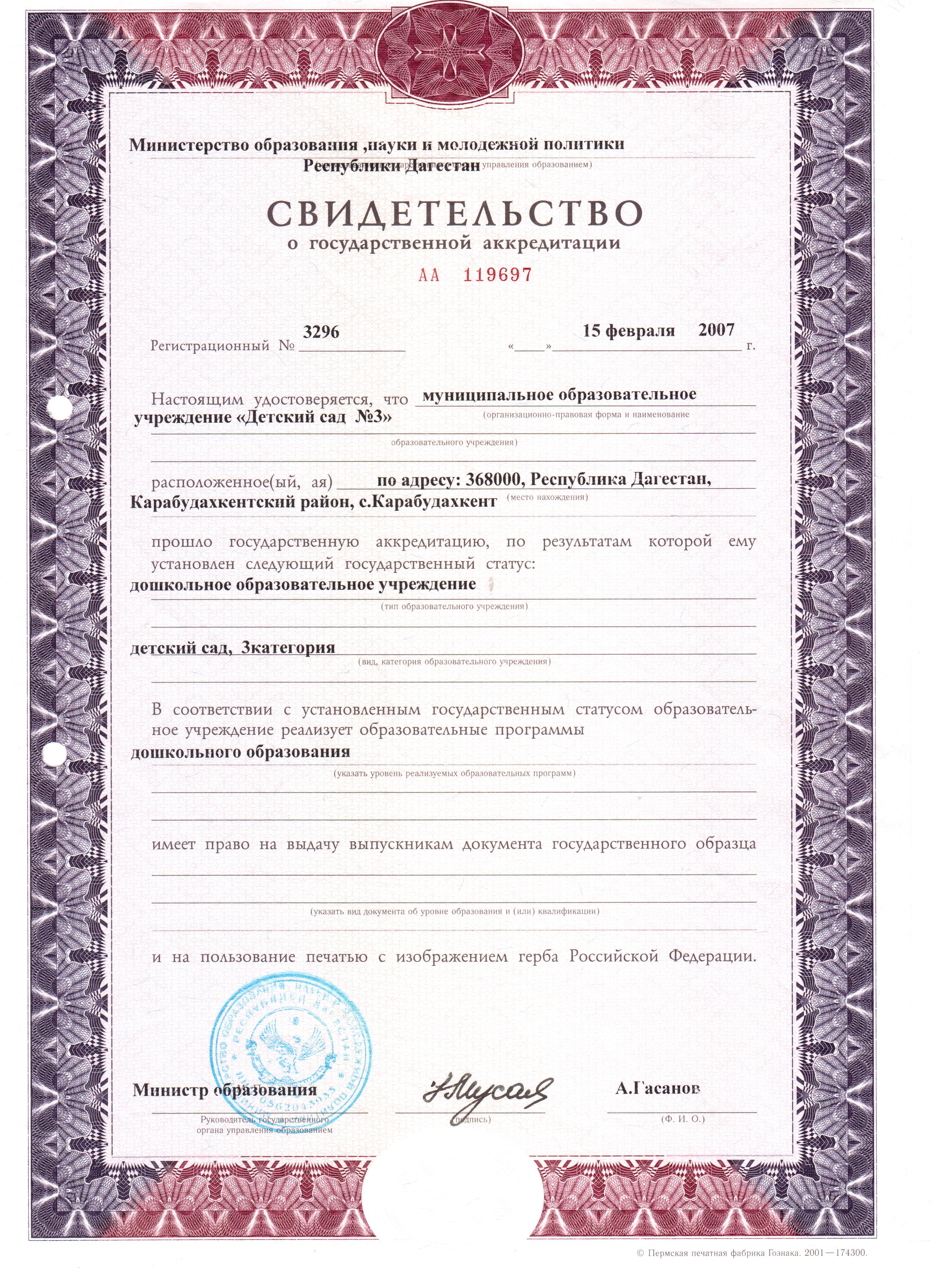 Свидетельство о государственной аккредитации (с приложениями) (при наличии)